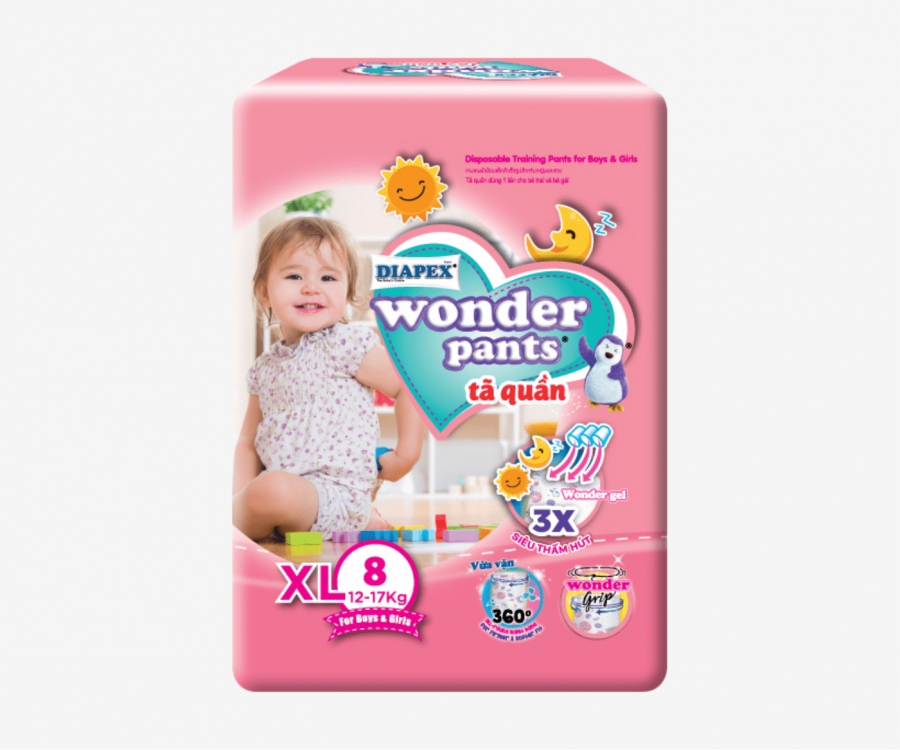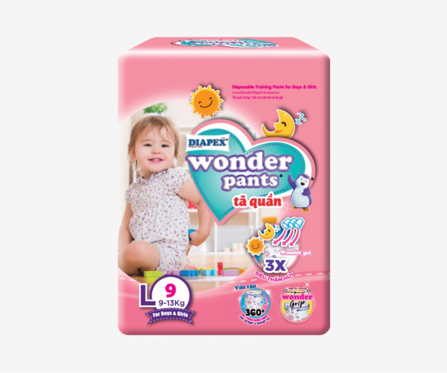 Easy to wear and specially designed for the active baby and busy working mothers. DIAPEX Wonder Pants are feature with Wonder Grips which will provide 360 degree all round waistband for Firmer & Softer Fits to your love one.