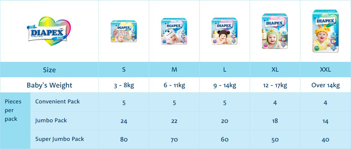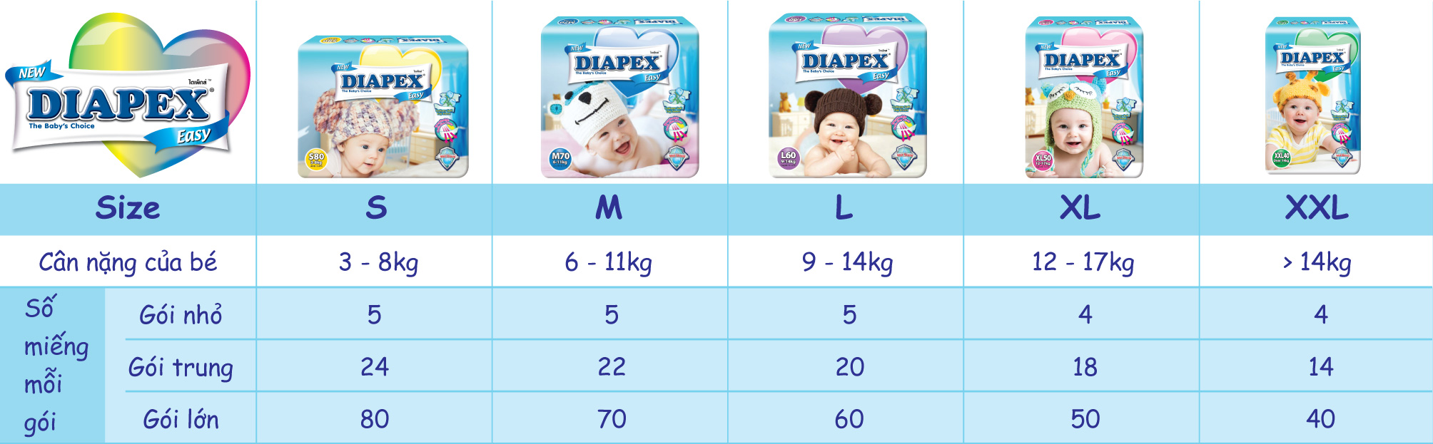 Được cải tiến hoàn toàn MỚI với tai dán Wonder Tape! Tã dán DIAPEX Easy được nâng cấp thêm nhiều đặc điểm nổi trội để đáp ứng nhu cầu của các mom cũng như những tiêu chuẩn mới của thị trường. Ngoài Wonder Tape, DIAPEX Easy còn đi kèm với nhiều tính năng khác nhau như cấu trúc lớp bề mặt mềm mịn bằng cotton, vải thoáng khí, đai lưng co giãn và lớp khiên chống tràn.