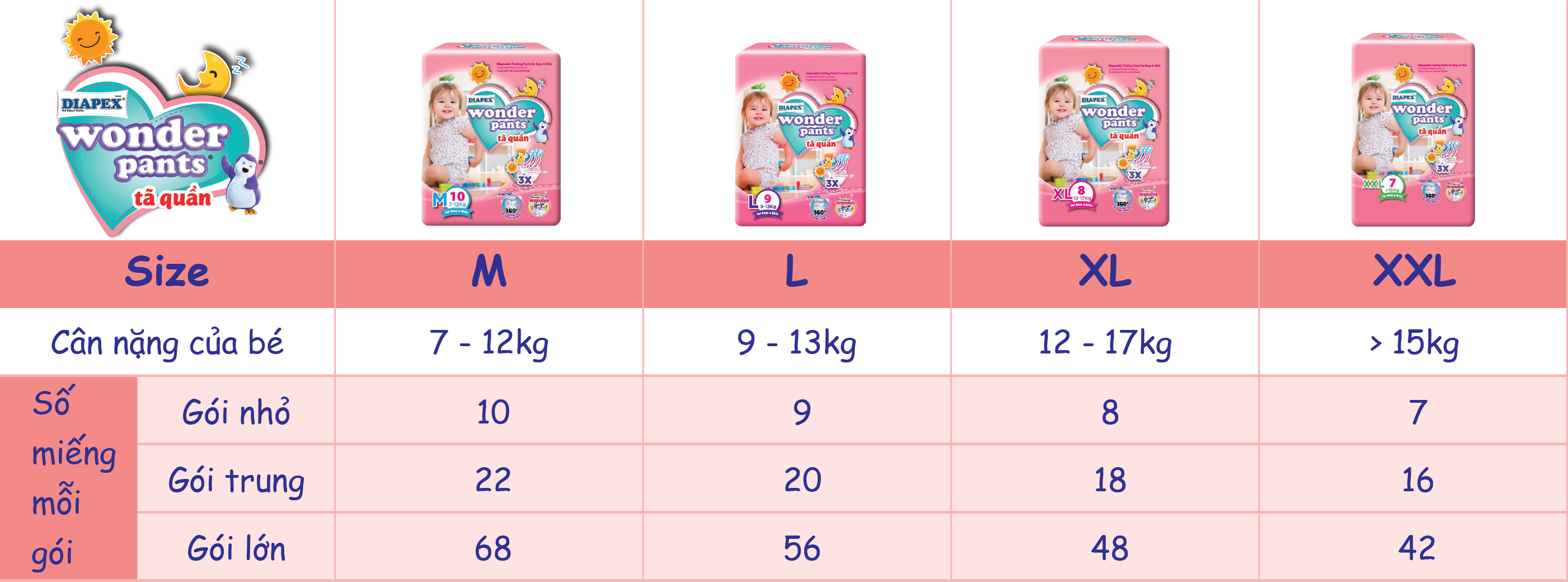 Là loại tã quần tiện lợi, dễ mặc và đặc biệt được thiết kế phù hợp cho những em bé hiếu động cũng như những người mẹ bận rộn.