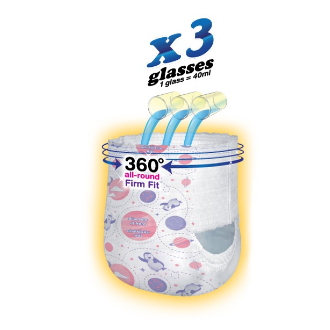 Lõi thấm hút siêu mềm với đai thun co dãn ôm sát đùi và hông bé. Lớp chống thấm ngược khóa mặt chất lỏng, giữ cho da bé luôn khô thoáng và sạch sẽ.